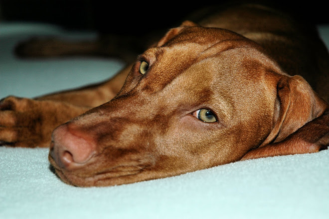 After what seemed like 3 dozen windsprints back and forth along the side yard she headed for her new favorite place, THE MANGROVES! This stand of Mangrove trees are situated between the backyard and the canal and depending on the tides they are either just one big black muck hole or are filled with water up over the ever sprawling root system of the trees. Well guess what, the tide was out and the stinky black mud was calling Ziva's name, 'Come romp in me, come splash and explore!' and being the great explorer that she is away she went climbing up over tangled masses of roots, branches and anything else the tides had deposited the last time around. The first time she ventured in and came out looking like the winner of a mud wrestling contest I nearly had a melt down, but quickly remembered a Vizsla is a hunting dog, they love the outdoors, they love to explore, she is short haired and wash and wear, it's only MUD, stinky mud, but still just mud. So now I just enjoy her happiness and let her go.Making sure she kept me in her sight and sound range she explored for awhile and then joined me on the dock to check out the low water. She stood gazing down the canal filled with much canine satisfaction, she had basked in the sun, chased the wind, explored the depths of the tropical jungle wearing the signs of a successful outing..... after all what's a little stinky Mangrove mud when you are one with nature.....